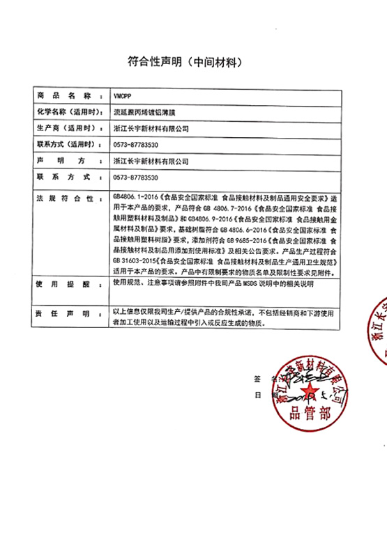 Changyu je priekopníkom a advokátom filmu „Transparentný film oxidu hliníka na balenie“ na čínskom trhu, vynaložili sme nepretržité úsilie pre vývoj a propagáciu tohto produktu. Changeu je tiež konzervatívcom prebiehajúceho hlavného národného štandardného projektu „Kvalitné všeobecné pravidlá oxidových bariérových plastov laminovaných filmov a vreckov na potravinové balenie“.